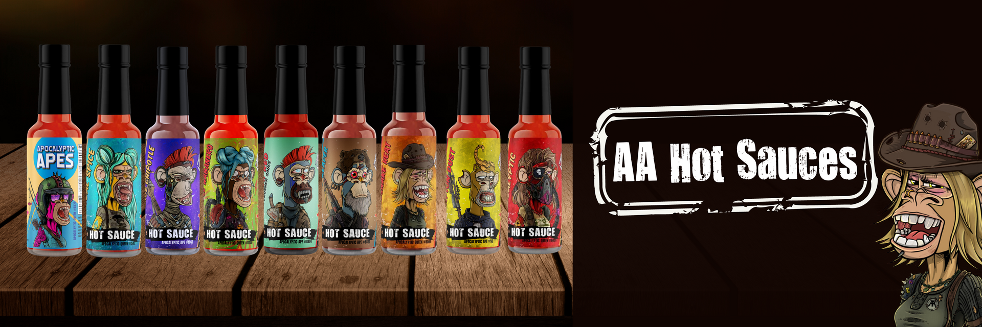 The Hot-pocalypse is upon us! That’s right, Apocalyptic Apes & United Sauces have teamed up to bring you the best selection of hot sauces in the Metaverse.